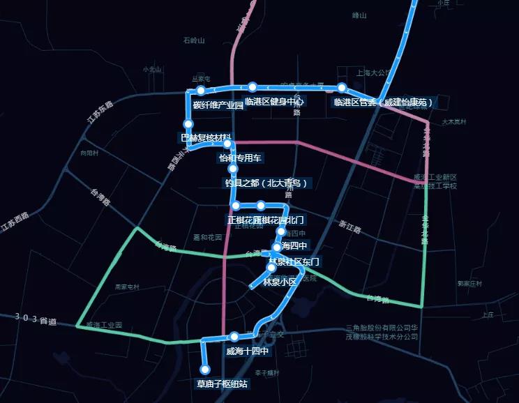 11日重點對臨港區(qū)以及環(huán)翠區(qū)陳家后溝、朝陽小區(qū)和威高花園等區(qū)域進行分析,圍繞草廟子區(qū)域線網(wǎng)布局,對草廟子周邊公交線路K6、110、118提出了優(yōu)化思路;對陳家后溝、威高花園及考慮朝陽小區(qū)首末站實際問題,形成了初步方案。